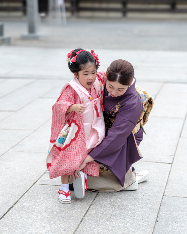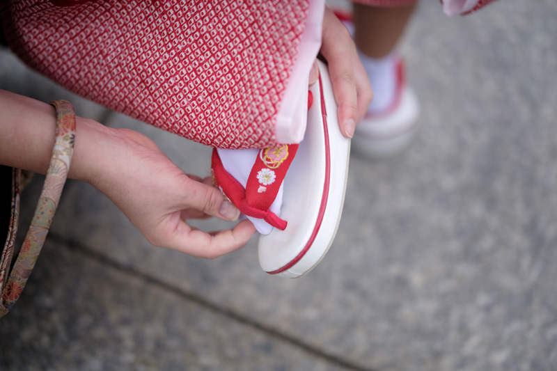 3歳の妹さんは、元気に歩いているうちにときどき草履が脱げたり、コロンと転びそうになったり