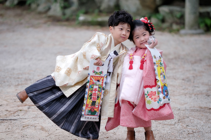 【七五三撮影】5歳男の子&3歳女の子の仲良し兄妹|宮地嶽神社でのほほえましい七五三参り(福津市)