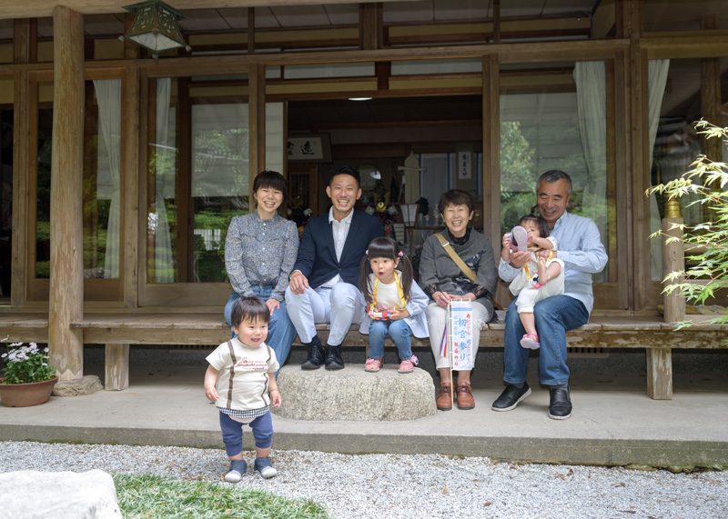 赤ちゃんだけでなく、声を掛けるパパママ、微笑む祖父母の姿も含めて残します。